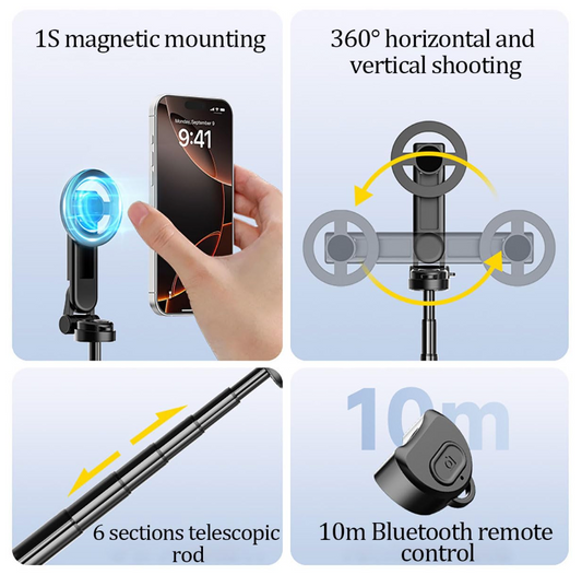 4-in-1 Magnetic Selfie Stick with Tripod - Compatible with All Phone